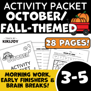 Problem: Early finishers can lead to off-task behavior, especially in October when energy levels are high. Without engaging tasks, classroom disruptions are almost guaranteed. Plus, if you’re unexpectedly out due to a cold or a family emergency, having a solid set of sub plans is crucial.